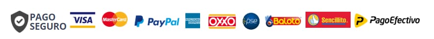 Puedes realizar tu pago dando clic en el botón comprar, puedes pagar con tarjeta de crédito, débito, PayPal, Oxxo, Pagos en efectivo, Efecty y transferencia bancaria.